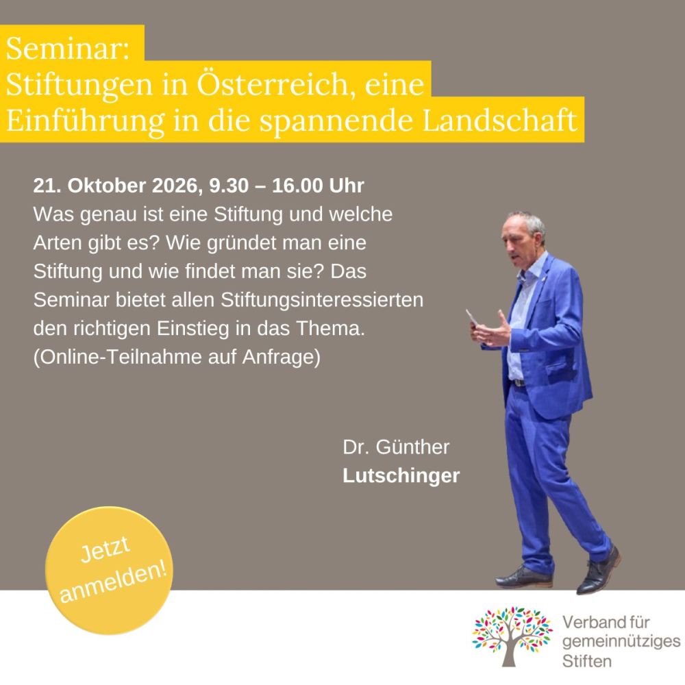 Gemeinnützige Stiftungen haben eine lange Tradition. Aber was genau ist eine Stiftung? Österreich verfügt über einen kleinen, aber wachsenden gemeinnützigen Stiftungssektor. Rund 1000 gemeinnützig tätige Stiftungen und Fonds zählen die Register. Was unterscheidet operative Stiftungen von Förderstiftungen, Privatstiftungen von Bundesstiftungen oder Gemeinschaftsstiftungen von Fundraising-Stiftungen? Wie gründe ich eine Stiftung, wie finde ich sie? Das Seminar bietet einen umfassenden Überblick über die österreichische und angrenzende Landschaft und hilft mit Tipps und Tricks. Gleichgültig, ob Sie persönlich in Stiftungen tätig sind, eine Stiftung ansprechen wollen oder überlegend eine zu gründen, das Seminar bietet Ihnen dafür den richtigen Einstieg.