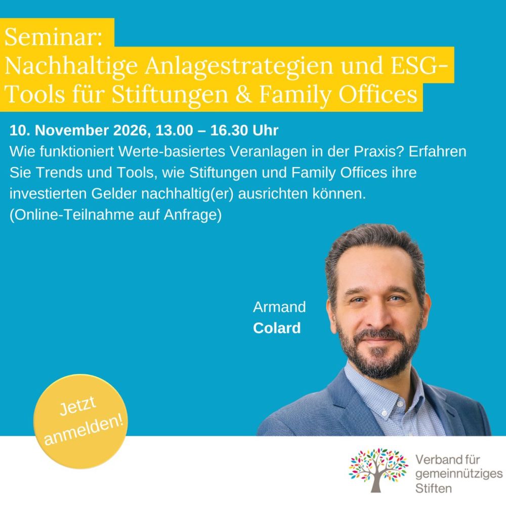 Wie funktioniert Werte-basiertes Veranlagen in der Praxis? Welche Trends gibt es im Sustainable Finance-Bereich und wohin geht die Reise in den kommenden Jahren? Was bedeuten Begriffe wie ESG, SDG, SRI, Artikel 8, Artikel 9, EU-Taxonomie, Best-in-Class, Impact-Investment, Engagement/Voting und wie können diese bei Investitionsentscheidungen einfließen? Gibt es praktische Tools und Tipps, wie Stiftungen und Family Offices ihre (an den Kapitalmärkten) investierten Gelder nachhaltig(er) ausrichten können, um die Wirkung dieser Kapitalströme ebenfalls mit den Werten der eigenen Organisationen in Einklang zu bringen oder steht das gänzlich im Widerspruch beispielsweise zu Rendite-Zielen?