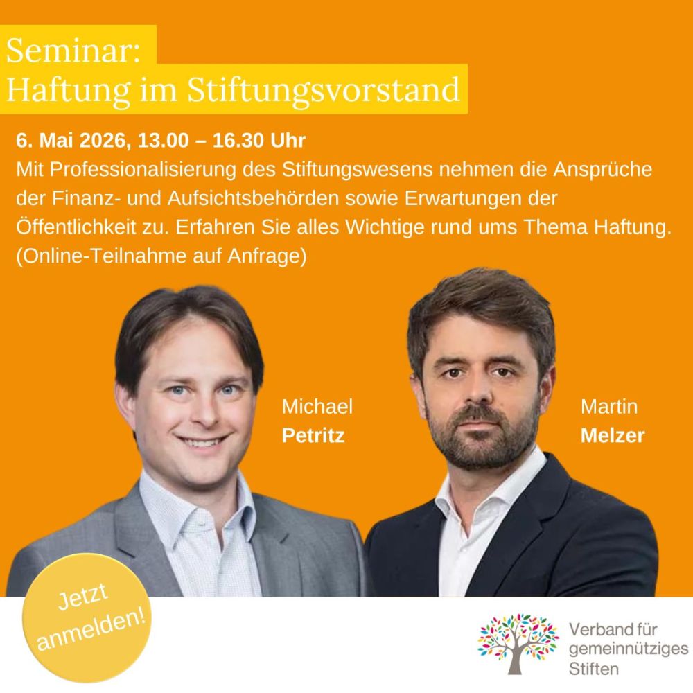 Wie ist so ein Vorstand zusammenzusetzen? Wie kann der Vorstand seine Aufgaben und Verantwortungen aufteilen und als Team funktionieren? Wie können neue Mitglieder gewonnen und langjährige wertschätzend verabschiedet werden? Wie kann der Vorstand sich weiterentwickeln? Spezifische Weiterbildungsangebote für diese verantwortungsvolle Position gibt es in Österreich derzeit kaum. Der Verband für gemeinnütziges Stiften möchte diese Lücke schließen und organisiert aus diesem Grund das erste Seminar für Vorstände und Führungskräfte von gemeinnützigen Stiftungen.